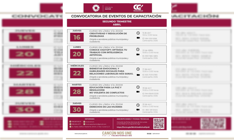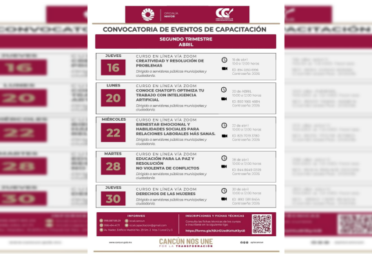 CancúnDestacadasBenito Juárez ofrecerá cursos gratuitos en línea sobre bienestar, creatividad e inteligencia artificialRedacción16 horas ago19Cancún, Q. Roo.- El Ayuntamiento de Benito Juárez, a través de la dirección general de Capacitación en Calidad, contempla este mes...