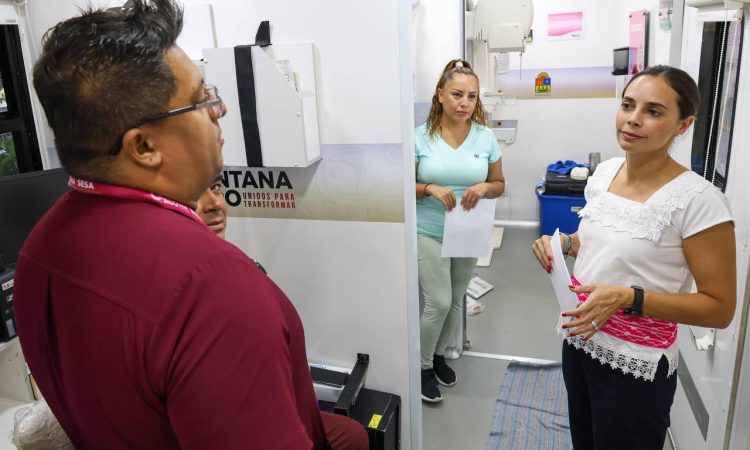 Cancún, Q. R., a 13 de octubre de 2025.- En el marco del Mes Rosa conmemorativo a la prevención del Cáncer de Mama, la presidenta municipal, Ana Paty Peralta, a través del Instituto Municipal de la Mujer (IMM), realizó la “Brigada Rosa” en la Casa de la Mujer Emprendedora, en el que se desarrollaron diversas actividades a favor de la salud, entre ellas, el taller de autoexploración para detectar a tiempo dicha enfermedad y mastografías gratuitas por parte de las caravanas de los Servicios Estatales de Salud (SESA) por parte del Gobierno de Quintana Roo.