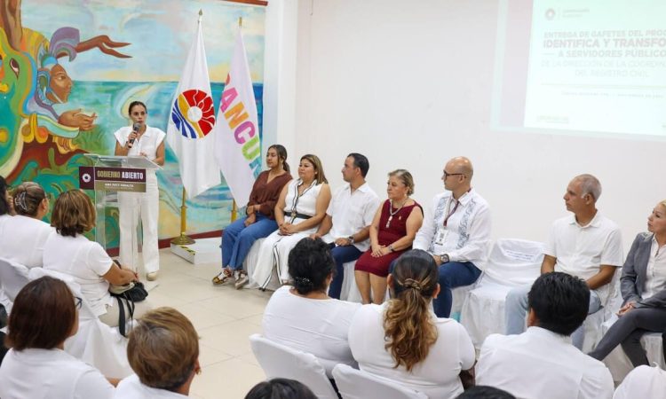 Cancún, Q. Roo.– Para dar continuidad a la campaña “Cero Corrupción” y parte del programa “Identifica y Transforma”, la Presidenta Municipal, Ana Paty Peralta, entregó 85 gafetes a igual número de servidores públicos de la Dirección de la Coordinación del Registro Civil, distintivos que además poseen herramientas tecnológicas como un código QR que permite identificar, calificar y en su caso, interponer quejas o denuncias sobre el desempeño de las funciones del personal.