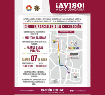 CancúnDestacadasImplementa Tránsito Municipal cierre parcial de vialidadRedacción11 meses ago184Cancún, Q. Roo.- El Ayuntamiento de Benito Juárez, a través de la Dirección de Tránsito Municipal, informa que con motivo...