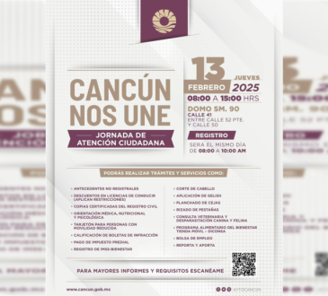 CancúnDestacadasGobierno de BJ invita a la segunda Jornada de Atención Ciudadana “Cancún Nos Une” en la SM 90Redacción1 año ago224Gobierno de BJ invita a la segunda Jornada de Atención Ciudadana “Cancún Nos Une” en la SM 90 ...