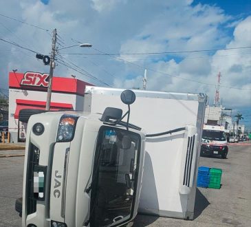 CancúnDestacadasAccidente vehicular deja un camión volcado y otro con el frente destruidoRedacción1 año ago300Cancún, 27 de enero.- Un aparatoso accidente se registró este mediodía en la intersección de las avenidas Chichén Itzá y...