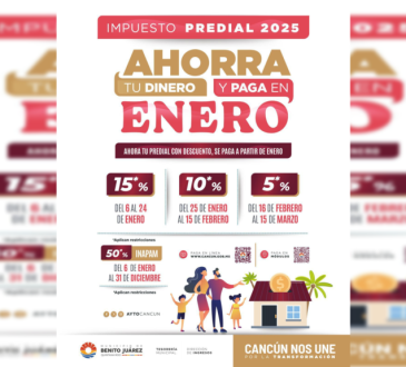 CancúnDestacadasInvita Gobierno de BJ a cumplir con pago de predial 2025 en eneroRedacción1 año ago294Cancún, Q. R., a 15 de diciembre de 2024.- Para otorgar facilidades a los ciudadanos con el fin de que...
