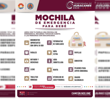 CancúnDestacadasGobierno de BJ recomienda “Mochila de Emergencia para Bebé” ante lluvias y ciclones 2025Redacción1 semana ago38Cancún, Q. R., a 05 de octubre de 2025.- Ante la Temporada de Lluvias y Ciclones Tropicales 2025, el Ayuntamiento...