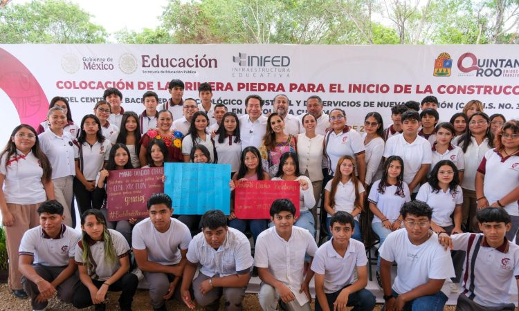 Para ampliar la cobertura educativa y crear oportunidades para que las y los jóvenes cursen un bachillerato tecnológico o una carrera técnica, la gobernadora Mara Lezama Espinosa y el secretario de Educación, Mario Delgado, pusieron la primera piedra para la construcción del Centro de Bachillerato Tecnológico Industrial y de Servicios (CBTIS) 301 de nueva creación, en el fraccionamiento Cuna Maya, en Cancún.Este nuevo plantel educativo de tres niveles contará con aulas didácticas, laboratorios, talleres, mobiliario funcional y tecnología de vanguardia, en beneficio de 900 alumnas y alumnos. La inversión asignada asciende a 62.5 millones de pesos, garantizando un espacio educativo moderno, seguro e incluyente.“Aquí en Benito Juárez comenzó la transformación y aquí seguimos demostrando que este municipio se está convirtiendo en un referente de bienestar y justicia social. Estamos transformando la vida de miles de familias con acciones que garantizan educación, servicios y espacios dignos, porque Cancún no solo es motor turístico, también es tierra de oportunidades donde las y los jóvenes tienen derecho a un futuro mejor”, expresó la gobernadora Mara Lezama.