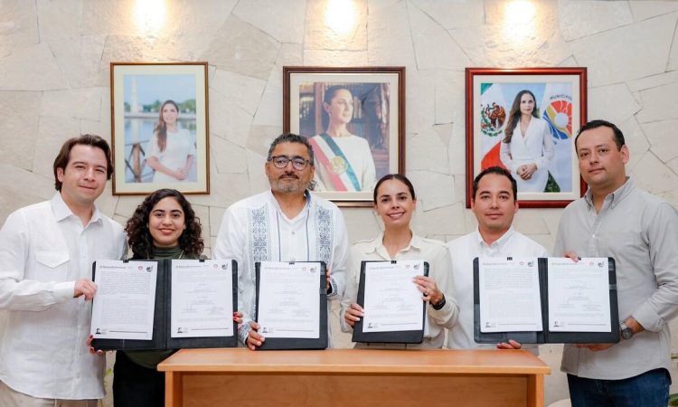 El convenio de colaboración lo firmaron la Presidenta Municipal, Ana Paty Peralta; el representante Regional de Quintana Roo del INSUS, Julio Alfonso Ortegón Espadas; el tesorero municipal, José Alan Herrera Borges; y la directora general del Instituto de Regularización y Vivienda del Municipio, Noraa Elizabeth Garza Ramírez.
