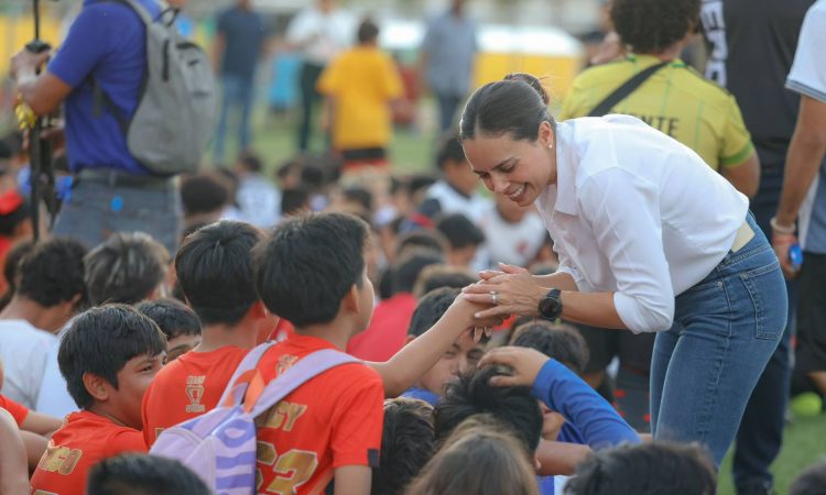 Como parte de la ceremonia que contó con la presencia de promotores deportivos, equipos y vecinos de la zona, se realizó el tradicional corte de listón y unos tiros desde el punto penal, donde rodeada de niñas y niños, la Presidenta Municipal selló la inauguración con alegría y sonrisas que marcaron en el ambiente.