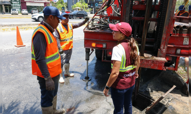 Inspecciona Ana Paty Peralta trabajos de desazolve por prevención a lluvias en la SM 17