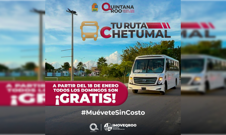 El titular del Instituto de Movilidad del Estado de Quintana Roo, Rafael Hernández Kotasek, informó que la gratuidad dominical aplicará en las tres rutas actualmente en operación: Ruta Caribe, Ruta Sian Ka’an-Las Américas y Ruta Calzada Veracruz, permitiendo a la ciudadanía realizar viajes seguros, cómodos y sin costo para convivir en familia, realizar actividades recreativas y disfrutar la ciudad.