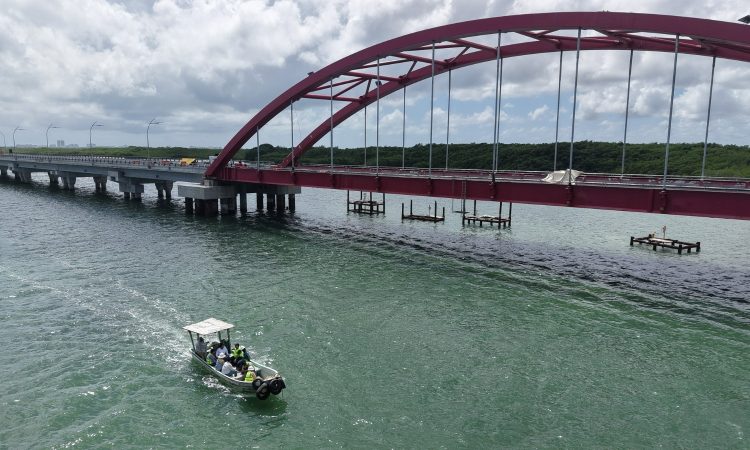 Personal del Centro SICT Quintana Roo y de Conagua realizaron un recorrido de supervisión para verificar que la construcción de la infraestructura mantenga el flujo natural de la Laguna Nichupté.