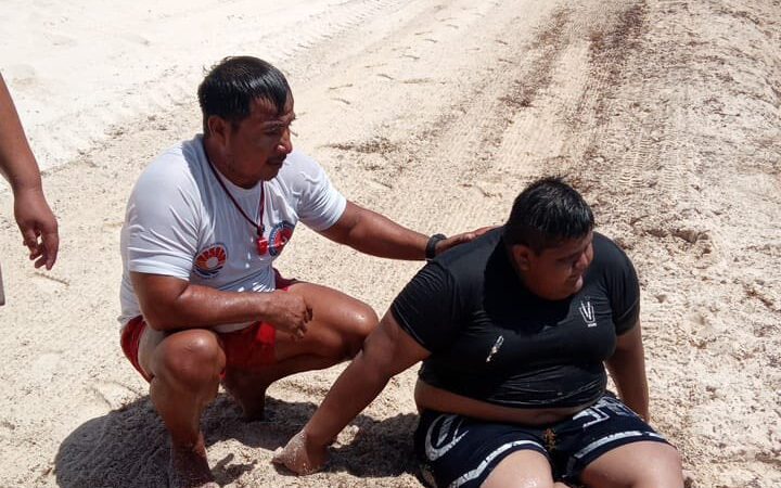 Cancún.– La rápida reacción de elementos de Protección Civil de Cancún y del cuerpo de Bomberos permitió poner a salvo a cuatro personas que eran arrastradas por la corriente en el banco de arena de Playa Delfines.