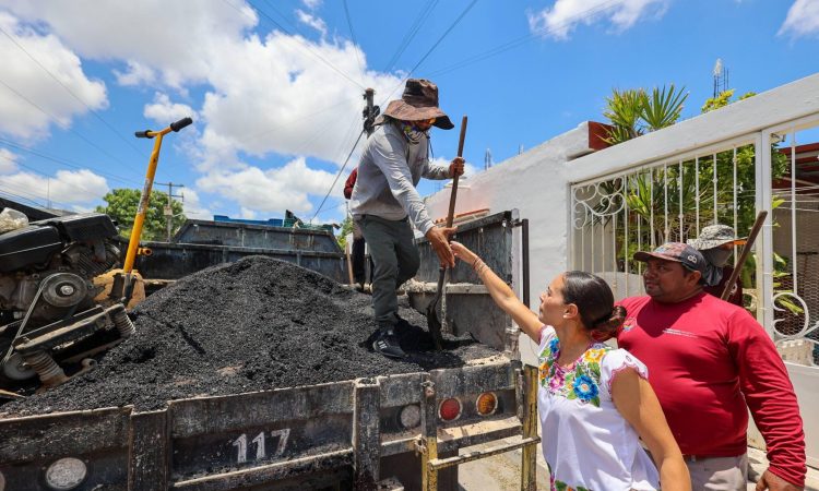 Cancún, Q. R., a 31 de julio de 2025.- La presidenta municipal, Ana Paty Peralta, supervisó los trabajos de bacheo con maquinaria en la Supermanzana 101, donde ratificó el compromiso con la ciudadanía de mejorar las vialidades para mejorar la seguridad vial y la afluencia de vehículos en la zona.