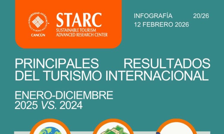 El país captó 35 mil millones de dólares en divisas y sumó 47.8 millones de visitantes extranjeros.Cancún, 13 de febrero.- México cerró 2025 con un incremento en la llegada de turistas internacionales y en la captación de divisas, aunque con una contracción en el segmento aéreo, de acuerdo con cifras del Instituto Nacional de Estadística y Geografía (Inegi), analizado por el Sustainable Tourism Advanced Research Center (STARC) de la Universidad Anáhuac Cancún.Entre enero y diciembre de 2025 arribaron al país 47.8 millones de turistas internacionales, lo que representa un aumento de 6.1 por ciento respecto al mismo periodo de 2024.En materia de ingresos, el país obtuvo 35.0 mil millones de dólares por concepto de divisas turísticas, cifra 6.2 por ciento superior a la registrada el año anterior.Segmento aéreo a la bajaPese al balance positivo general, el turismo aéreo mostró un retroceso. Durante 2025 llegaron 22.9 millones de turistas por vía aérea, una disminución de 1.3 por ciento en comparación con 2024.
